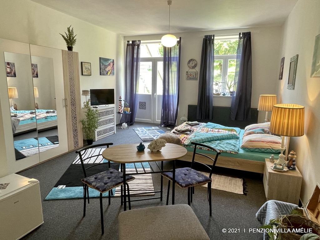 Spacious fully equipped room in nautical style with free wifi connection and separate entrance to the garden. The room has a minibar, an electric kettle, a varied selection of teas and coffees, TV, a shower, a hairdryer, slippers and a range of cosmetic samples. Breakfast of your choice is served directly in the room or you can use the reception area.