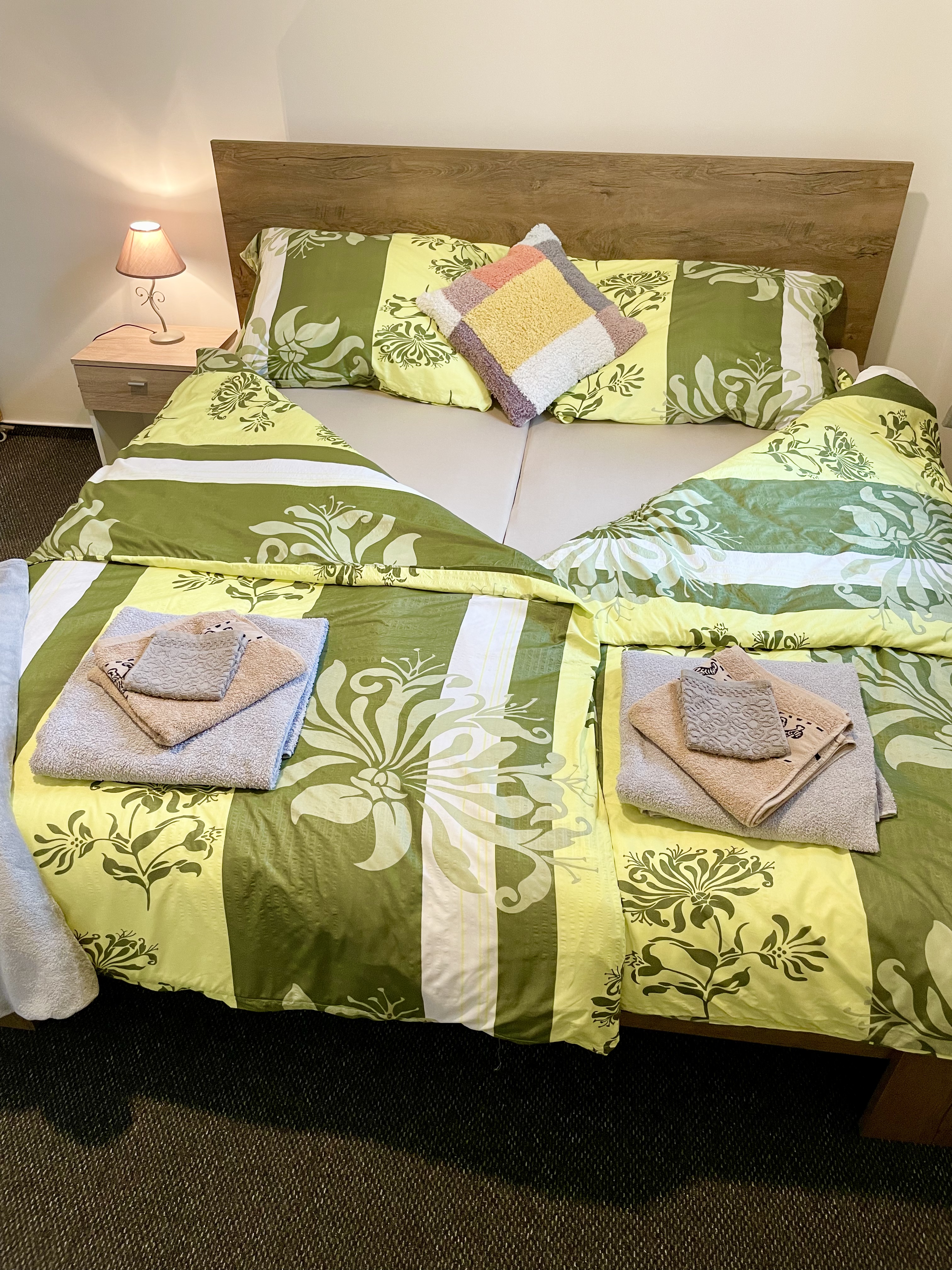 Spacious fully equipped room with free wifi connection, separate bedroom and private balcony. The couch in the living area can be unfolded to create another bed. The room has a minibar, an electric kettle, a varied selection of teas and coffees, TV, a bathtub, a hairdryer, slippers and a range of cosmetic samples. Breakfast of your choice is served directly in the room or you can use the reception area.