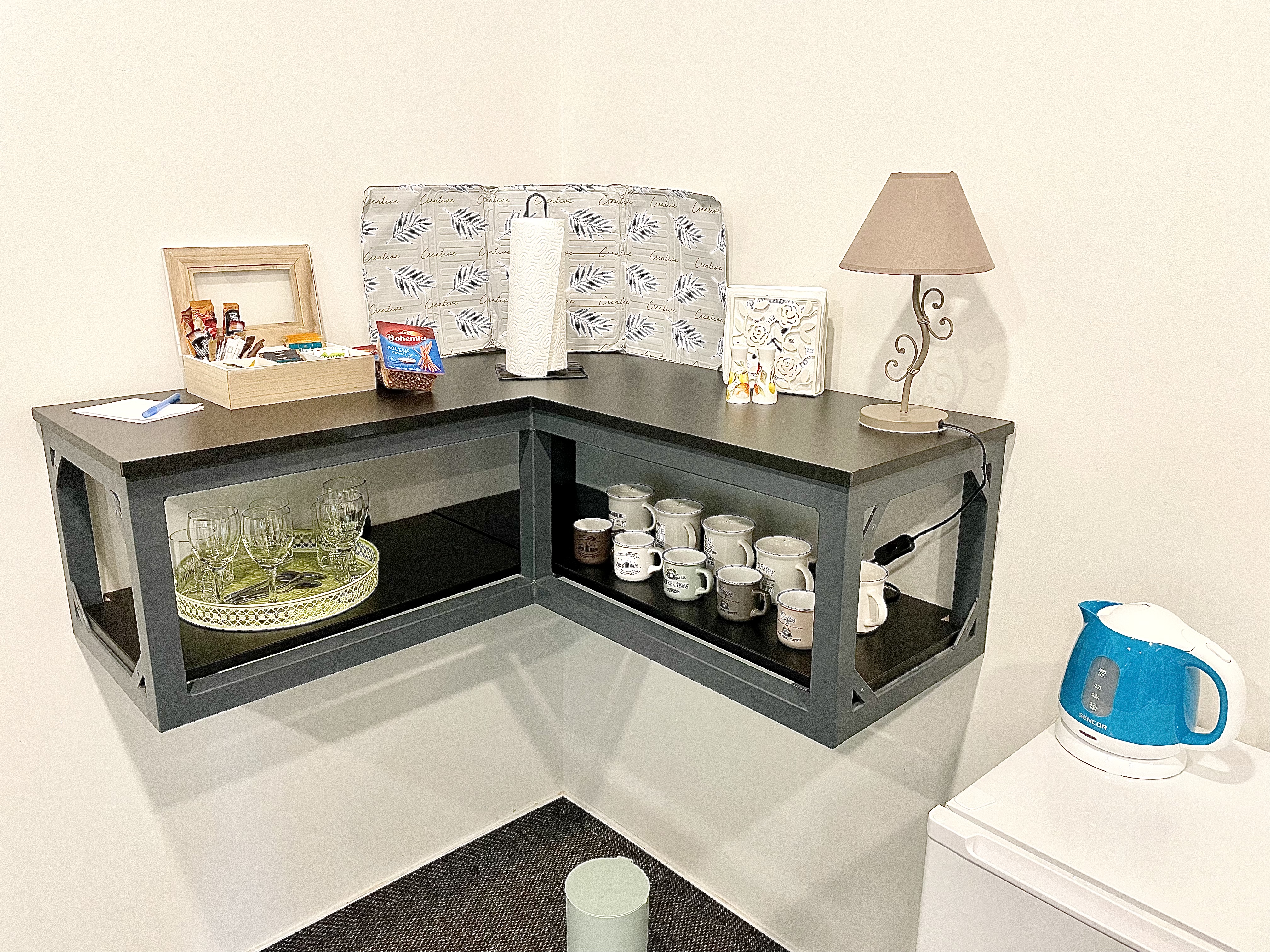 Playful fully equipped room with free wifi connection. The room has a minibar, an electric kettle, a varied selection of teas and coffees, TV, a shower, a hairdryer, slippers and a range of cosmetic samples. Breakfast of your choice is served directly in the room or you can use the reception area.