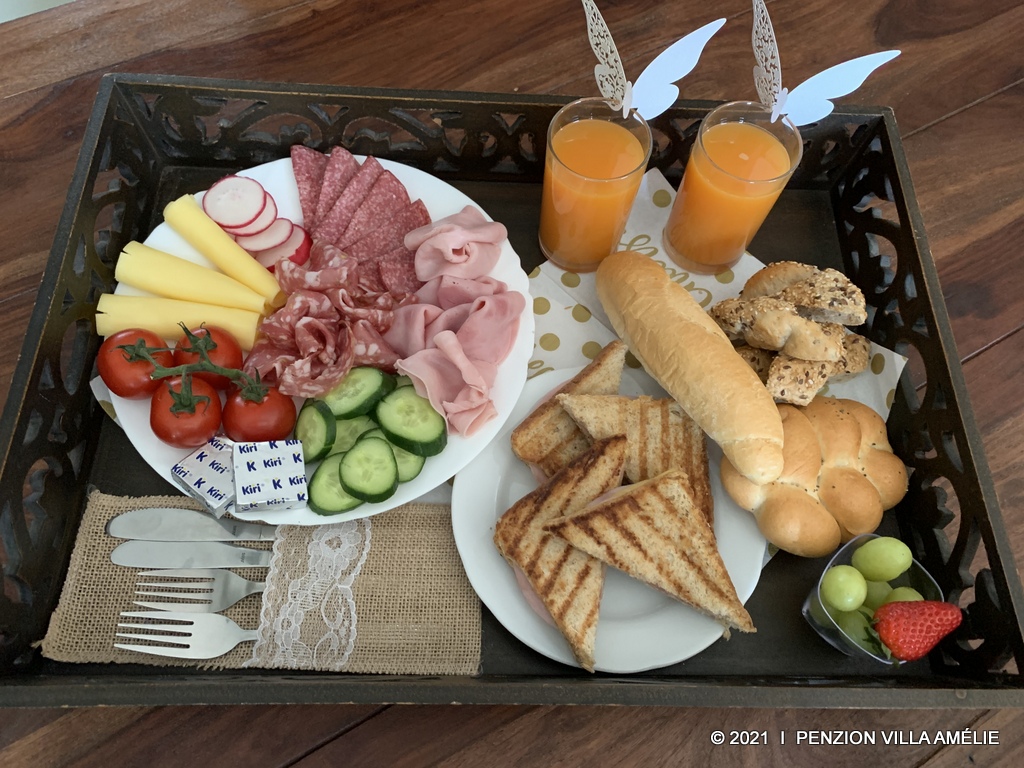 A rich breakfast menu served directly in the room, very popular with our clients.