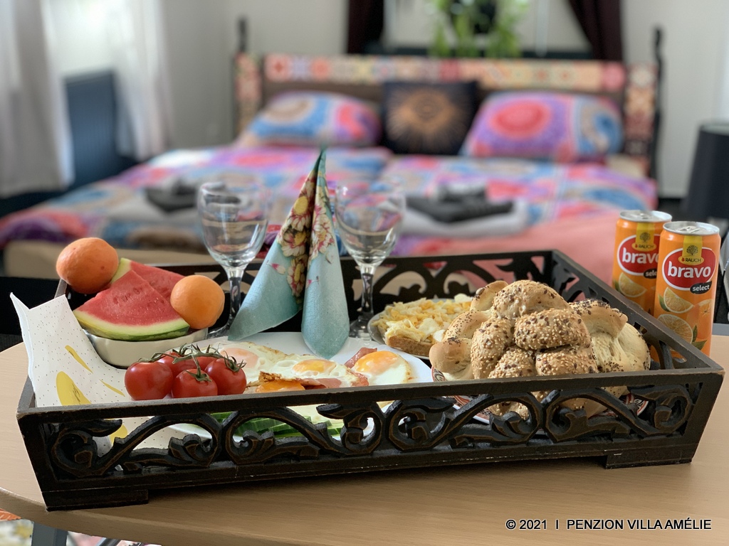Sunny fully equipped room in oriental style with free wifi connection. The room has a minibar, an electric kettle, a varied selection of teas and coffees, TV, a shower, a hairdryer, slippers and a range of cosmetic samples. Breakfast of your choice is served directly in the room or you can use the reception area.